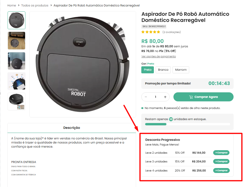 Agora, as promoções de desconto progressivo podem ser destacadas diretamente na página do produto, mostrando de forma clara as vantagens de comprar mais e pagar menos.