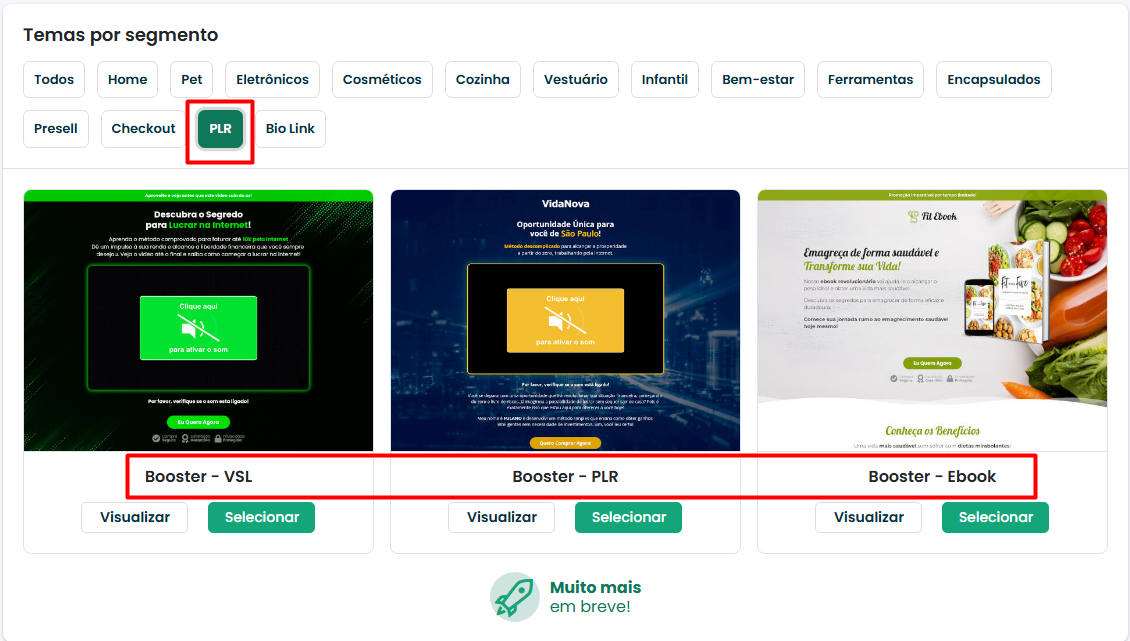 Os temas de Landing Pages abaixo não são compatíveis com os kits, pois o foco das mesmas são infoprodutos.