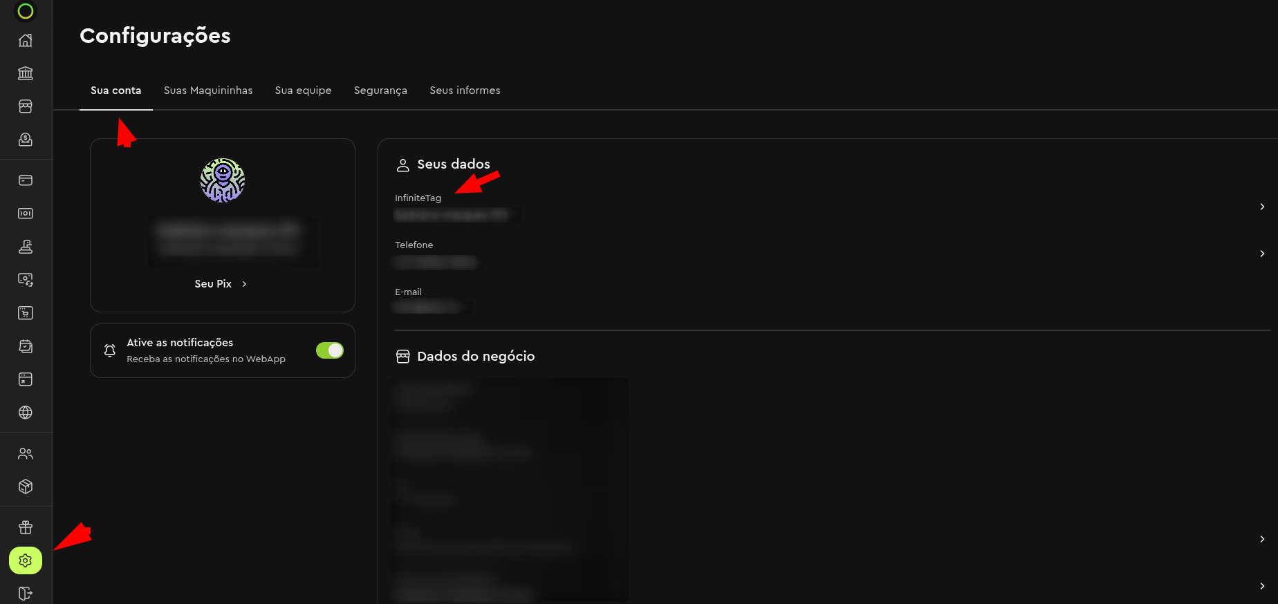 Dentro da área de configurações, procure pelo campo ou informação chamada: InfiniteTag