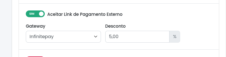 Ative as formas de pagamento aceitas. (A InfinitePay estará disponível para a opção Link de pagamento externo)